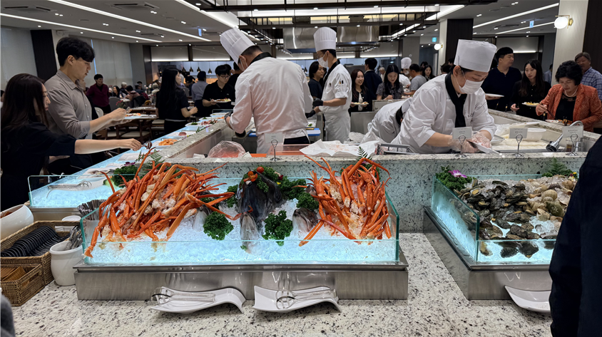 미식가 하객도 만족시킬 뷔페: 이곳은 밥이 정말 맛있기로 소문난 곳이라 기대감이 엄청나요. 투어 때 보니 하몽, 양갈비, 갈비 등 메인 메뉴 퀄리티가 남달랐고, 떡이나 후식 종류도 다른 곳보다 훨씬 다양했어요.