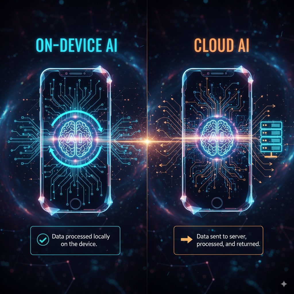 '온디바이스 AI가 뭔가요?'라는 질문에 가장 쉽게 답하는 방법은 비유를 드는 것입니다. 클라우드 AI가 궁금한 것이 색일 때마다 '도서관에 가서 책을 찾아보는 것'이라면, 온디바이스 AI는 '내 머릿속에서 바로 생각하고 답하는 것'에 가깝습니다.