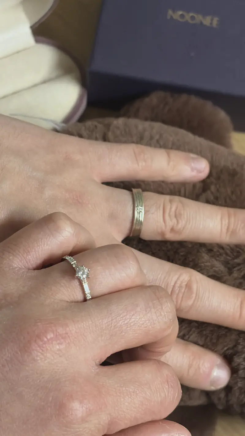 • 사이즈 조절: 신랑 반지는 줄임/늘림 모두 가능하고, 제 반지는 디자인 특성상 늘리는 것만 가능하다고 해요.